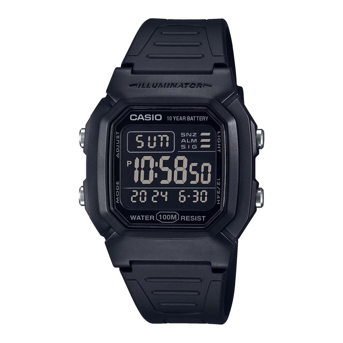Classic Digital Watch w/ Blackout Dial, Dual Time & 5 Alarms