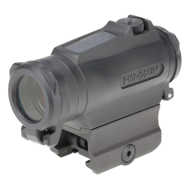 The HE515CT-GR is a 20mm micro optical sight designed for rifle and carbine applications. Features include a Titanium Housing, Solar Failsafe, Shake Awake, 12 brightness settings, Holosuns Green Super LED with up to 50k hours battery life, Multi-Reticle System, QD mount, Kill flash, and Clear Lens Caps.