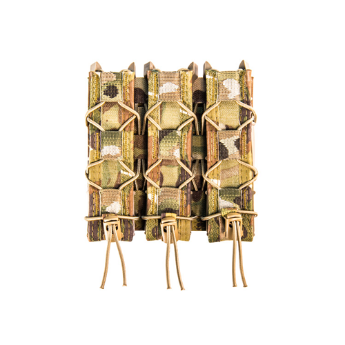This MOLLE shingle will keep up to 3 rifle and 3 pistol magazines secure and readily available. The three Double Decker pouches are permanently secured to a laser cut laminate base ensuring easy and stable mounting on any PALS platform, such as vests, plate carriers and battle belts. Each Double Decker can hold almost any combination of magazines, HSGI Shot Shell Trays, flashlights, multitools and many other similar sized items.