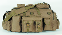 A smaller version of the popular Mojo load out bag, it has the same great features but 3/4 the size. With 11 assorted size exterior pouches, lots of webbing to attach more pouches, double-zip access to the main compartment, double compression straps on each end, metal D ring attachment points abound, top clear ID window, wrap-around carry handle, adjustable removable shoulder strap with movable pad and when the load gets too heavy, we've provided a padded, adjustable shoulder strap harness that conceals in the bottom of the bag when not needed.