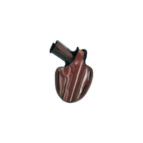 The Shadow II is a 3-slot pancake style holster with thumb snap closure. It has a low-profile design and ultra-high ride that conceals even full size semiauto pistols. Made from premium grade, full grain leather, the Shadow is contour molded and precurved to fit the body for maximum comfort. The 3-slot design allows the user to vary the carry angle, wearing the holster in either the strong side or cross draw configuration. It features an open muzzle, reinforced thumb break and the belt slots fit up to 1.75 in. (45mm) belts. Gun Fit- Bersa Thunder 380 Gun Fit- Kahr K9 Gun Fit- Kahr MK9 Gun Fit- Kahr K40 Gun Fit- Kahr K40 Covert Gun Fit- Kahr T40 Gun Fit- Kahr PM9