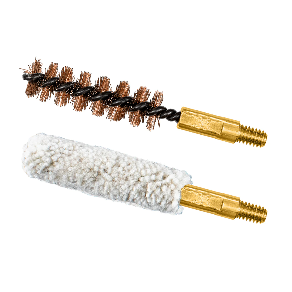 The Otis bore brush and mop combo pack includes 1 bronze bore brush and 1 cotton bore mop. Otis brushes have a proprietary Tufcor core wire that is corrosive-resistant with a tighter twist for better bristle.
