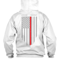 Thin Red Line Hoodie honors our brave firefighters that run towards the most dangerous and deadly situations. The thin red line represents the men and women that risk their lives to rescue the public from the roar and destruction of fire. The striking black background of the design reminds us of all the firefighters that made the ultimate sacrifice to keep our families safe. To wear this sweatshirt is to honor and respect the heroes bravely defending us all.