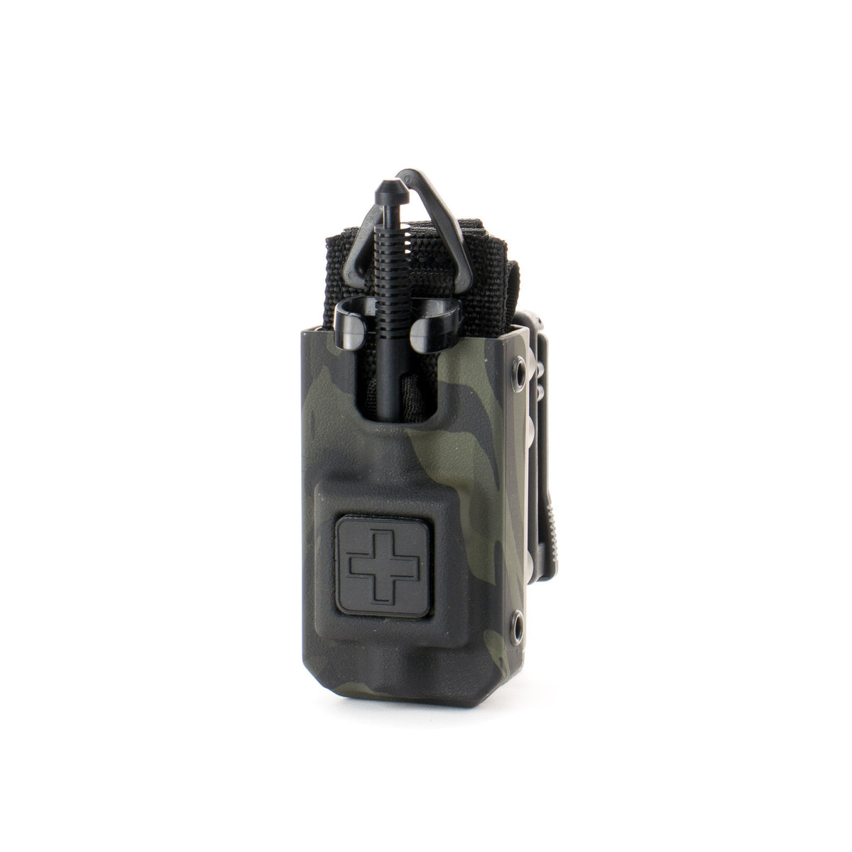 The Eleven 10 RIGID TQ Case is a hard-sided tourniquet case designed to give you easy access to your tourniquet when seconds matter. It can be worn on your duty belt, MOLLE/PALS compatible vest, or in the accessory position on your Safariland drop leg holster. The RIGID TQ Case holds your tourniquet securely in place utilizing friction, so there's no straps, buckles or flaps to deal with. It offers true one-handed gross motor skills deployment of the tourniquet even when your hands are bloody or wet. Just grab the exposed portion of the tourniquet and with a swift pull, it releases.