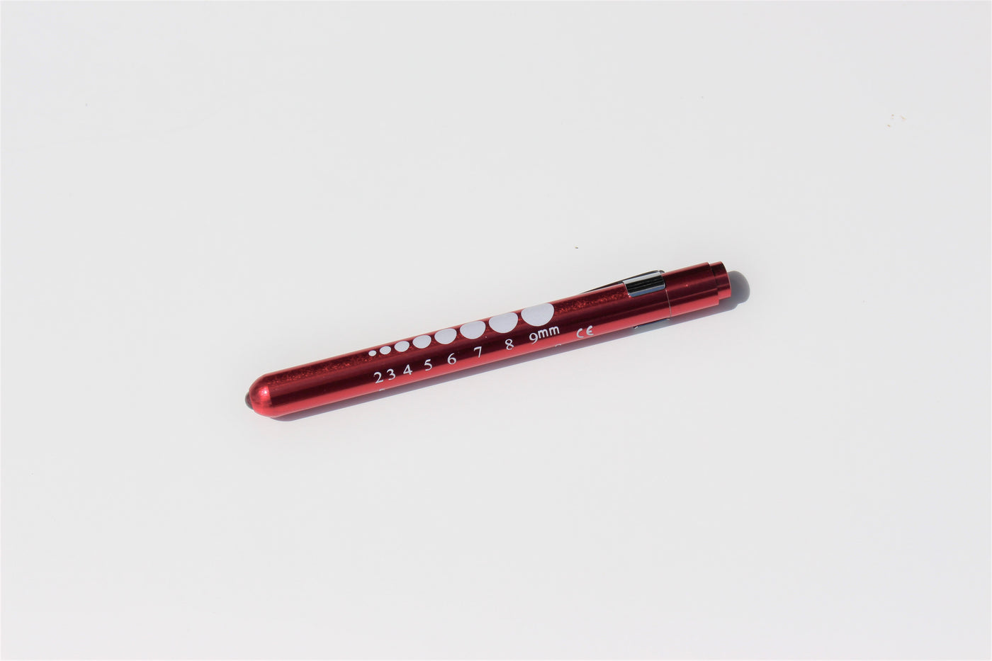 EMI's Ultra-Light Pupil Gauge Penlight now comes in your choice of three striking colors- metallic red, blue or black. The penlight is activated by depressing its tail-cap switch.
