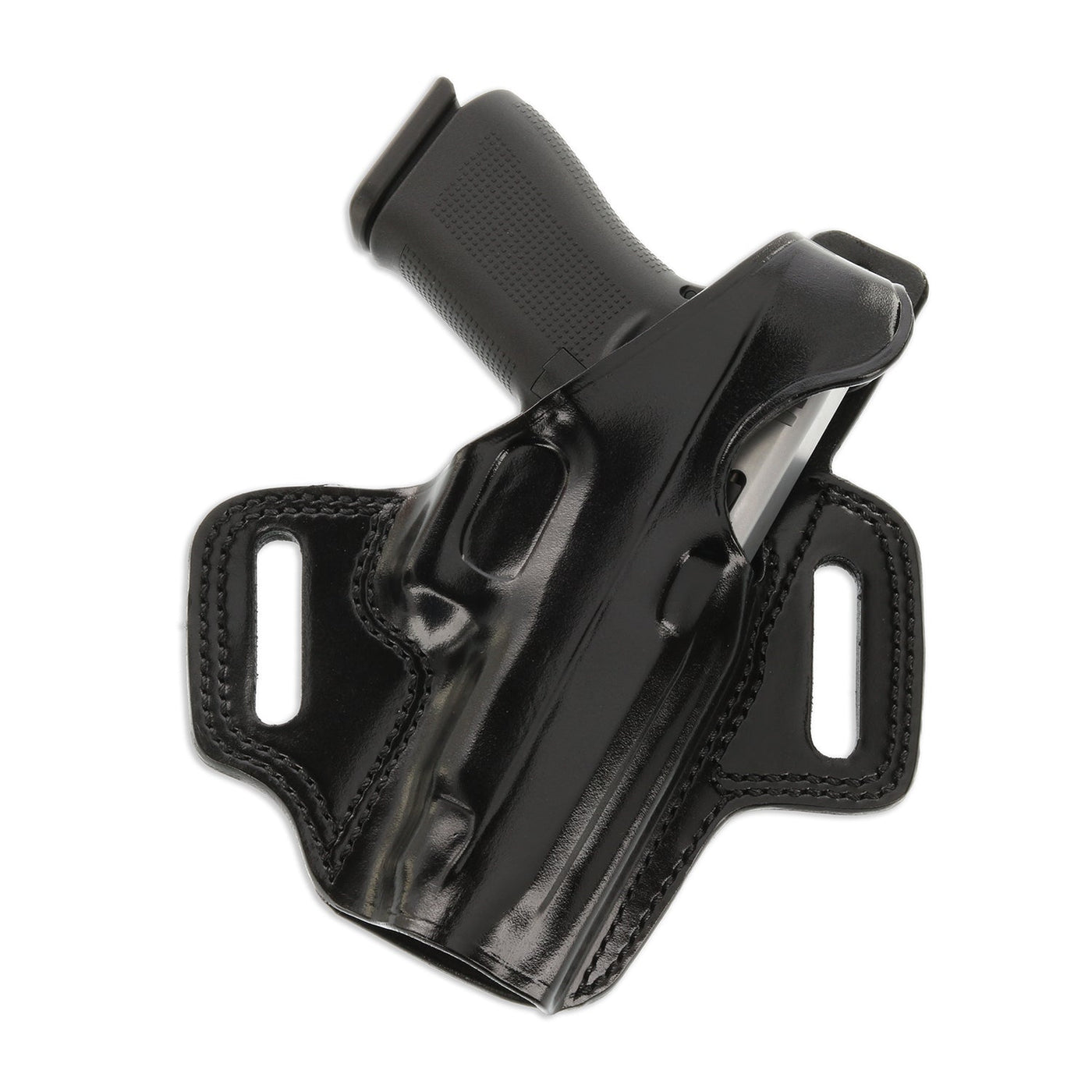 The FLETCH high ride holster is one of Galco's most popular designs. Its unique two-piece construction is contoured on the body side to the natural curve of the hip, keeping all the molding on the front of the holster, allowing for significantly more comfortable carry and a narrower profile than an ordinary pancake type holster. Hand-molded to fit specific handguns, the FLETCH features a reinforced thumb break for security, combat grip accessibility for speed, double-stitched seams for durability, and covered trigger guard for safety. The retention strap configuration is specific to individual firearms types, and varies depending on firearm model. The FLETCH is constructed of premium saddle leather and made to fit belts up to 1 3/4in. Gun Fit - Browning BDA .380 Gun Fit - Beretta 85 / F Gun Fit - Beretta 84 / F