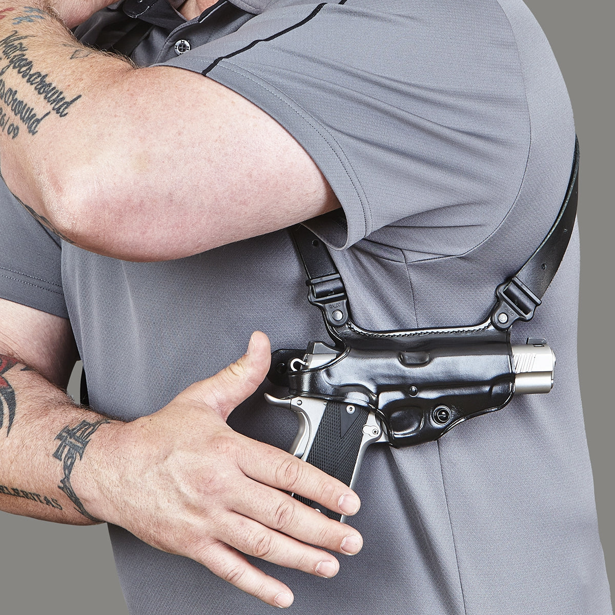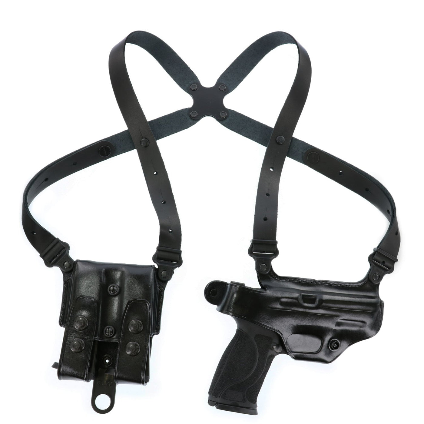 The Miami Classic is quite possibly the most imitated shoulder holster system in the world. A direct descendant of the original shoulder system first introduced by Galco in 1970 (then the Famous Jackass Leather Company), the Miami Classic has since become the favorite of professionals worldwide. A key component of this patented shoulder system is its spider harness. All four points of the spider harness pivot independently and are connected by our unique clover shaped Flexalon swivel back plate, which is a Galco trademark. This results in a perfect fit and lasting comfort for all sizes and shapes. This system is constructed of premium saddle leather and includes holster, harness, ammo carrier and a set of system screws. The Miami Classic is fully modular.