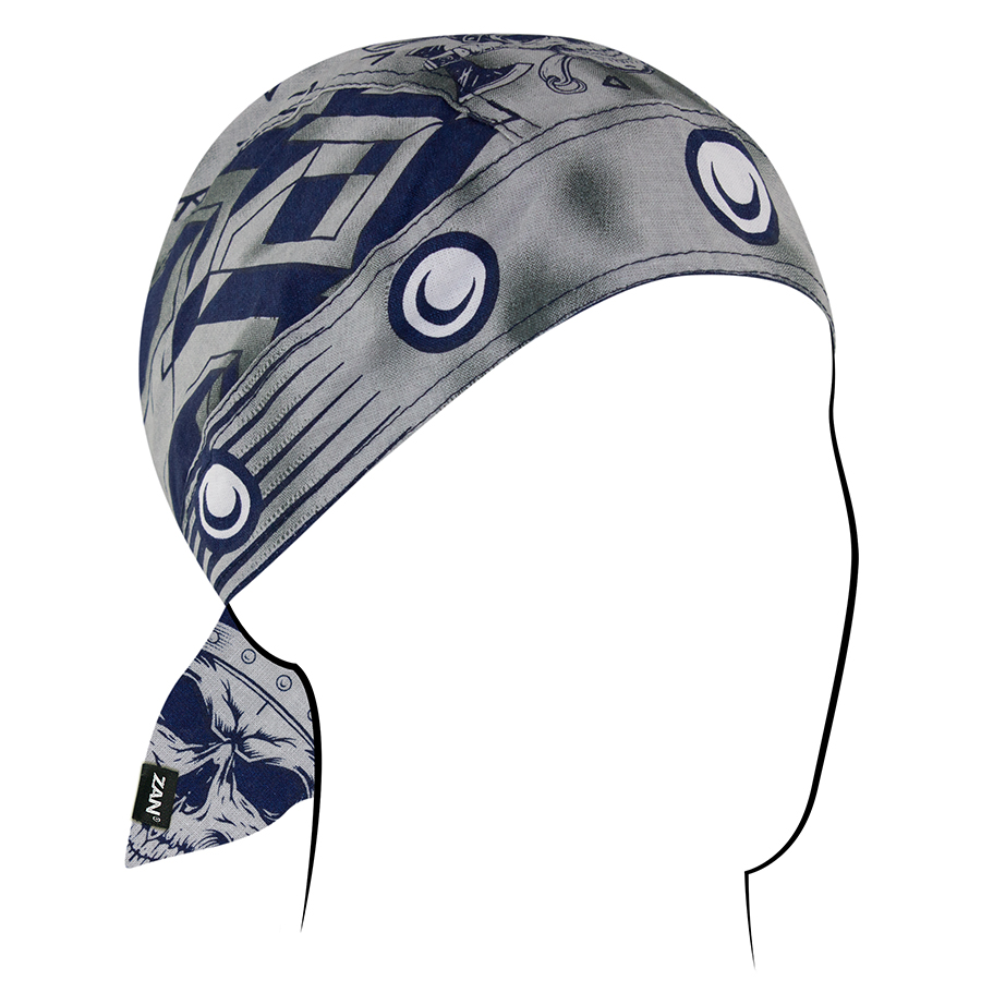 The ZANheadgear Flydanna is a bandanna that has been sectioned into 6 panels and transformed into a headwrap. By keeping sweat from a rider's eyes and preventing sweat and skin oils from soiling helmet liners, the Flydanna works well as moisture barrier underneath a helmet. Additionally, the Flydanna keeps hair from getting snagged on earrings or tangled in the wind.