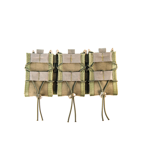 This MOLLE shingle will keep up to 3 rifle and 3 pistol magazines secure and readily available. The three Double Decker pouches are permanently secured to a laser cut laminate base ensuring easy and stable mounting on any PALS platform, such as vests, plate carriers and battle belts. Each Double Decker can hold almost any combination of magazines, HSGI Shot Shell Trays, flashlights, multitools and many other similar sized items.