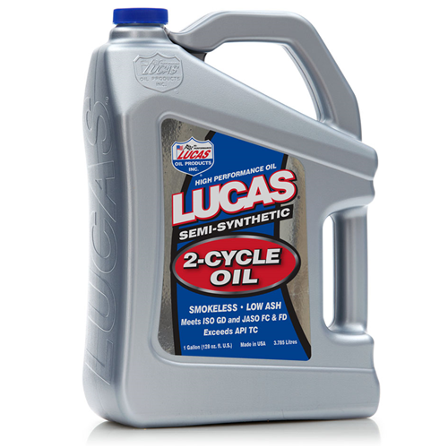 Lucas High Performance Semi-Synthetic 2-Cycle Oil has been specifically developed to give a long trouble-free life to gasoline-powered 2-cycle engines. Designed for any oil injection system or pre mix up to 50:1. Use in Snowmobiles, Weed Eaters, Leaf Blowers, Chain Saws, and more. This oil uses an advanced smokeless formula specially blended from mineral oil, synthetic oil, and a low ash additive package containing fortified dispersant inhibitors. It also contains exclusive detergents and lubricants. The end result of this advanced technology is a more thorough burning of the fuel resulting in more power and fewer emissions. Lucas ashless detergent inhibitor package minimizes spark plug fouling, pre-ignition, ring sticking, and combustion chamber deposits. The user can expect cleaner exhaust ports and spark plugs, less carbon buildup on the piston rings, skirts, crown, and under crown areas.
