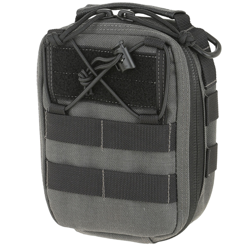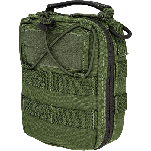 Specialized medical pouch with an adjustable interior. The FR-1 Pouch design evolved from a first aid kit bag with added versatility. It can be used as a general purpose organizational pouch or even a specialized medical pouch. Both front and back halves have layered pockets topped with a wide array of elastic loops, essential for keeping contents in place. The full zipper clamshell opening can be fine tuned to various angles using a paracord adjuster. Last but not least, the FR-1 has a Torch-Lair in front with bungee cord compression.