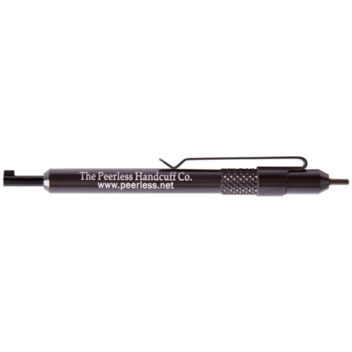 A high quality extra large key designed to make double locking and unlocking restraints faster and easier. The extra long aluminum barrel is oversized and knurled for lighter weight and easy handling. The flag tip and double lock pin are made from heat treated alloy steel for high strength and durability. Compatible with all standard type handcuff locking mechanism.