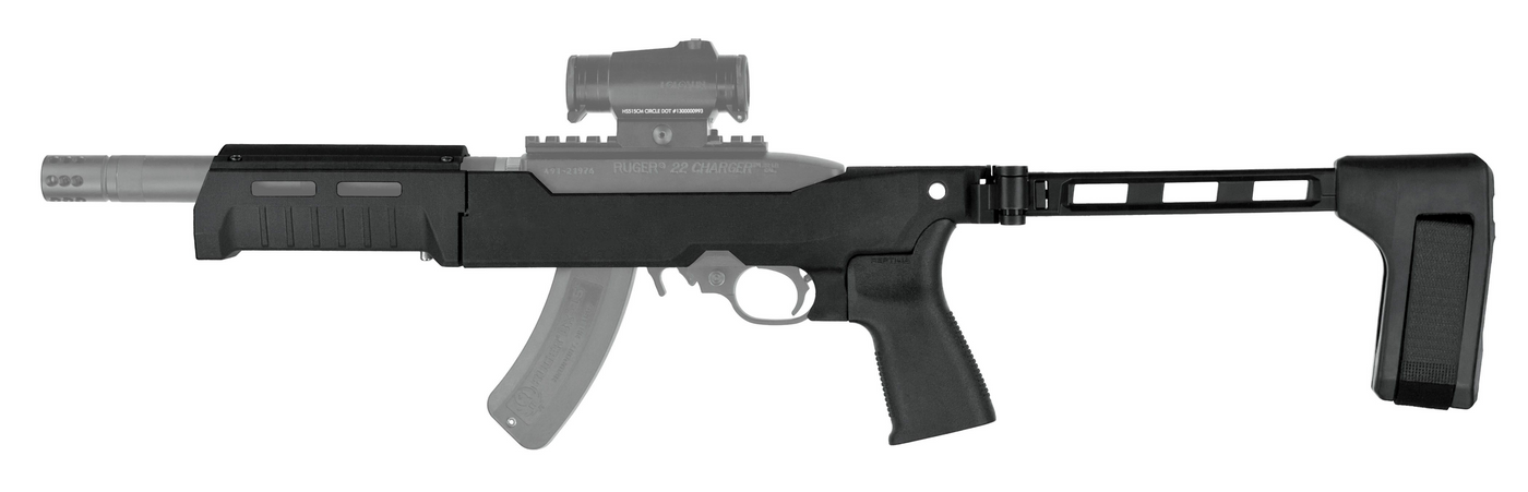 Designed in partnership with Unity TacticalTM, the SB22TM is a lightweight, modular chassis for the Ruger 22 ChargerTM, Ruger 10/22, and its clones. Able to accept M1913-compatible braces and stocks, the SB22 is the key component to the perfect pack gun.