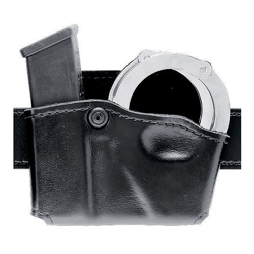 Holds most standard chain and hinged handcuffs. Tension screw to adjust draw. Gould and Goodrich Gold Line, deeply molded leather. Fits belts up to 1.75'' wide. Fits BERETTA Cougar (all); GLOCK 17, 19, 20, 21, 22, 23, 26, 27, 29, 30, 31, 32, 33, 34, 35, 36, 39; H+K USP 9, .357,.40,.45 (all); KIMBER Polymer;  PARA-ORDNANCE P10, P.