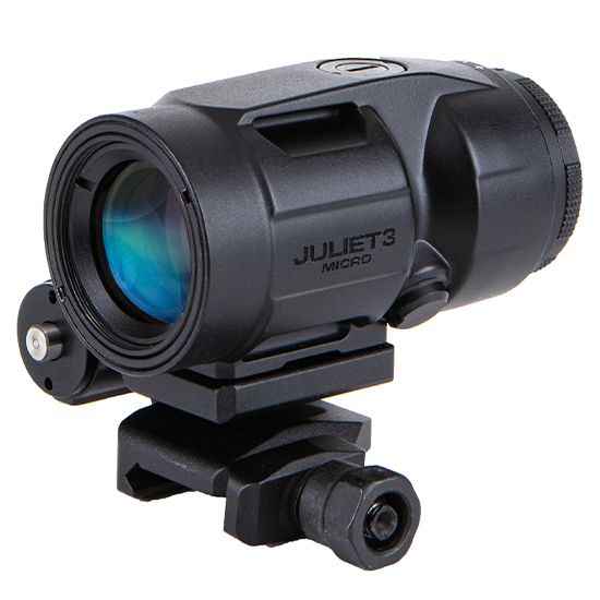 Micro size with macro features. Introducing the JULIET3-MICRO Magnifier. This ultra-compact and lightweight magnifier feature an aircraft-grade CNC aluminum housing and durable, dependable IPX-7 waterproof and fog-proof performance. With its high-performance Dielectric coated prism, the JULIET3-MICRO Magnifier provides excellent light transmission giving you complete clarity when you need it most.