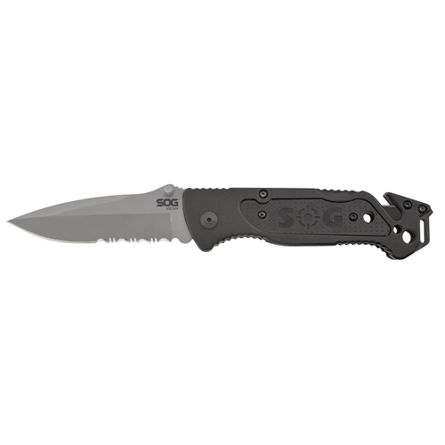 Don't know about you, but the world seems to be getting more complicated. The Escape acknowledges this and provides a solution for you. As a general knife, it is the perfect size for everyday carry but still has a tremendous amount of capability with its one hand-opening blade. Integrated in the handle is a line cutter (perfect for cutting cord, string, seat belts, etc.), a glass breaker for extreme emergencies, our patent-pending wire stripper, and extra line cutter blades (which are stored under the handle slab). All this combined with a stout partially serrated spear point blade and hard anodized aluminum handle, says I'm ready for whatever might come my way.