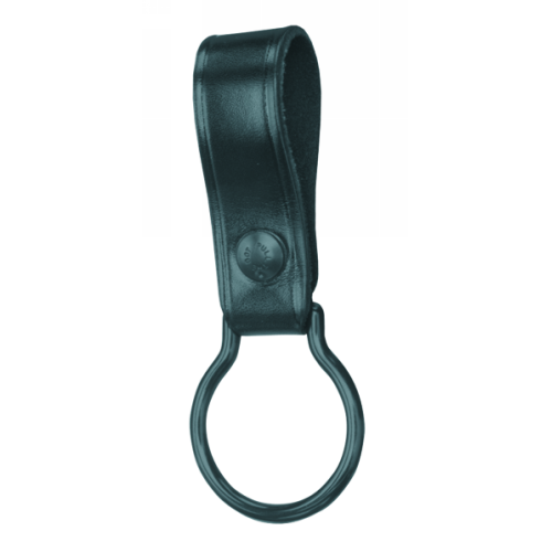 This ring style flashlight holder from Gould & Goodrich holds D cell flashlights. The leather belt loop fits standard duty belts up to 2.25 wide and has a Plain finish. The black ring has a cutout for the flashlight switch. Gould & Goodrich uses only top quality materials right down to the threads and glues in the production of police duty gear and holsters.