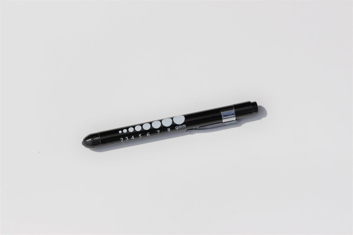 EMI's Ultra-Light Pupil Gauge Penlight now comes in your choice of three striking colors- metallic red, blue or black. The penlight is activated by depressing its tail-cap switch.