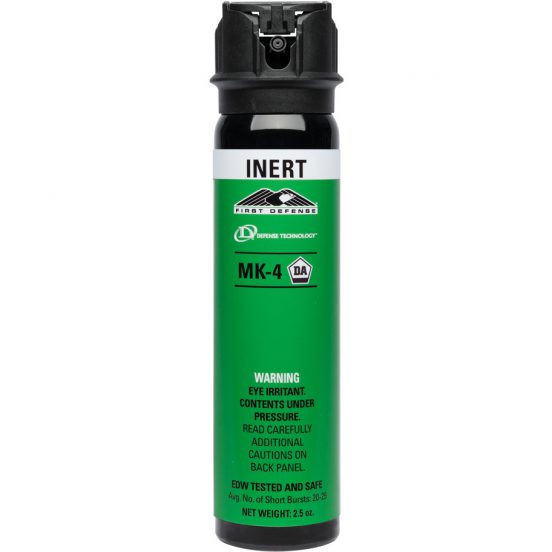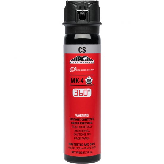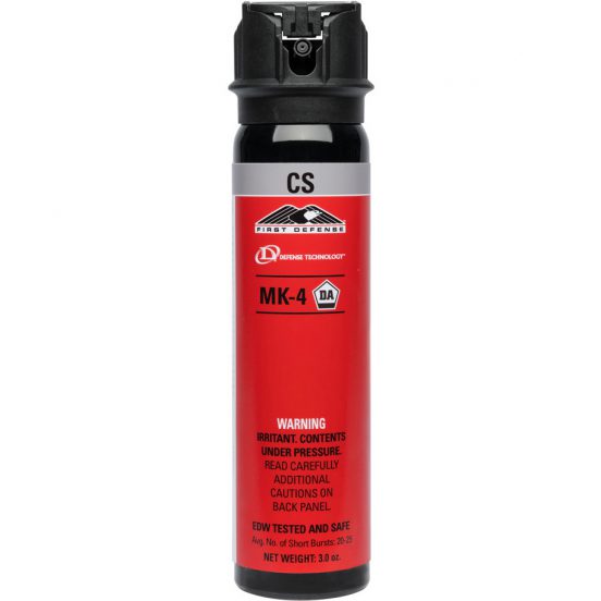 The MK-4 is an ideal size for patrol officers to wear on a duty belt and will deliver 20-25 short bursts of OC at an effective range of 10-12 ft. This .4% MC OC aerosol product utilizes a cone delivery method providing a wide spray pattern for easier target acquisition.