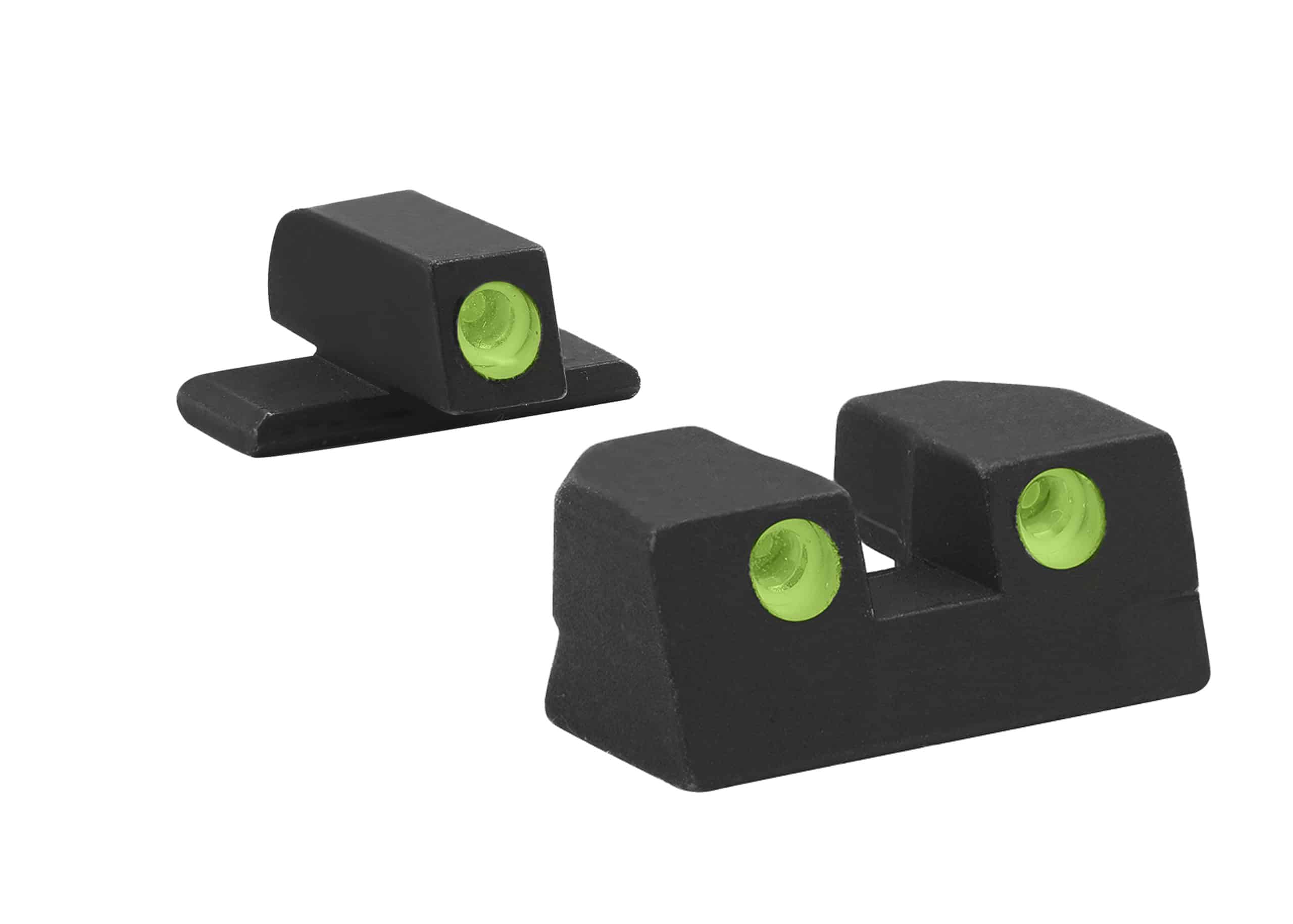 MEPROLIGHT combat proven self-illuminated night sights enable you to hit stationary or moving targets under low-light conditions with dramatically increased hit probability. Test results by marksmen and journeymen level shooters have shown an increase of over 85% in hit efficiency, using MEPROLIGHT self-illuminated. TRU-DOT models offer a handgun sighting system for improved rapid instinctive aiming which requires no transition from day to night use. Day and night, the shooters aiming reference is three solid dots, identical in appearance and location under all light conditions.