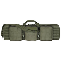The 42 Deluxe Padded Weapon Case from Voodoo Tactical contains space for two rifles up to 42-inches long and two pistols. Internal tie-downs prevent weapons from moving around during transport and thick, 360-degree padding on every side of the case protects firearms from impact damage. Two, smaller padded interior pouches provide room for a pair of pistols, or can be used to transport optics safely. The bag's exterior features three large pockets for ammunition or accessories, complete with hook-and-loop flaps for extra retention. Gusseted pouches provide a deceptively large amount of storage space, enough room for six rifle and eight pistol magazines. The magazine and pistol pouches feature locking zippers and include six compatible padlocks to safeguard valuables from potential theft. Multiple PALs-webbing straps provide a convenient attachment point for MOLLE and ALICE pouches.