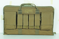 The Enlarged Pistol Case from Voodoo Tactical carries and protects two full-sized handguns. The fully-padded interior guards firearms against impact while the elastic retention straps hold them firmly in place during transport. When the secure locking zippers are undone, the bag opens up into a large mat that showcases pistols. On the exterior, four magazine pouches with hook-and-loop top flaps provide a convenient way to carry spare ammunition. The exterior also features two zippered accessory pouches, complete with hook-and-loop covers for added retention. Sturdy nylon handles guarantee a reliable hold.