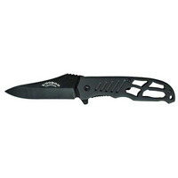 To increase the performance of this compact, tactical EDC. We replicated the internal steel liners into a distinctive skeletonized aluminum handle, this reduced the weight by one-third and increased its appeal fivefold. With the 3.5"" liner locking anodized blade, a non-reflective matte black finish, spine jimping, and the superior spring-assisted opening, we were well on our way to creating a bestselling folder. The final touch is a rigid stainless steel drop point blade (57-59 RC) with a plain edge, for wet stone sharping in the field and stainless steel clip for tip-down carry.