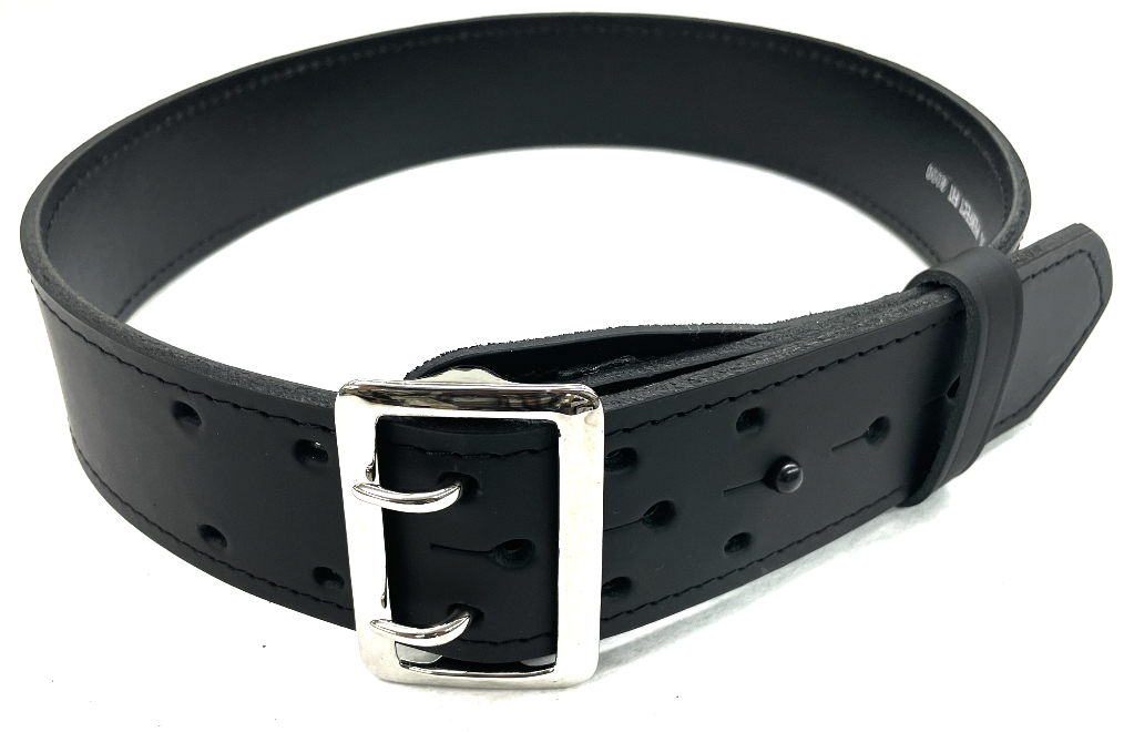 2.25 inch fully lined Sam Browne leather belt in black with black buckle. Basketweave finish.
