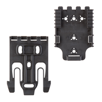 The QUICK-KIT includes the QLS 19 Locking Fork and QLS 22 or QLS 22L (Extra Locking Feature) Receiver Plate components. Constructed of injection molded nylon, the receiver plate can be attached at different angles according to user preference. The QLS (Quick Locking System) allows for quick transfer of gear between attachment points such as a belt loop, tactical leg shroud or other stable platform. The QLS fork and plate combination passes the Level I Retention pull test. Allows users to rearrange gear quickly and easily without the use of tools. Hardware and Allen wrench included. Available in Black, FDE Brown, Foliage Green, OD Green or Coyote Brown.