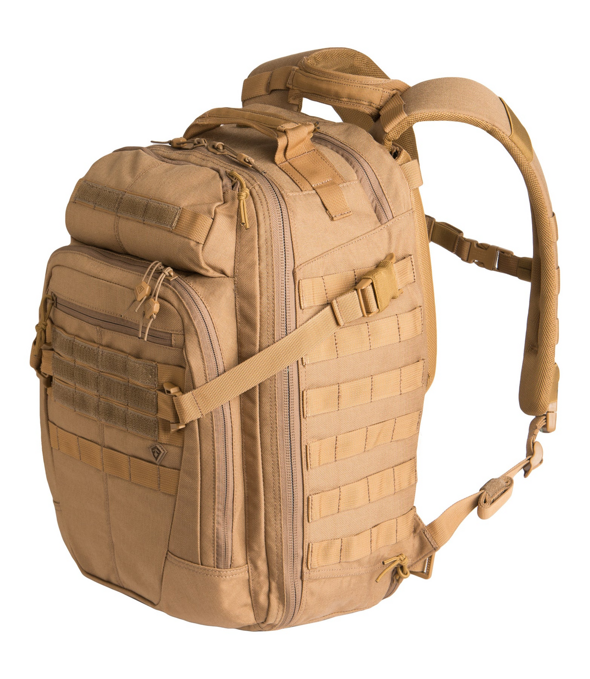 Dual density shoulder straps, double layered bottom, internal hook/loop mounting platform, and a fully functional hook/loop web platform compatible with MOLLE/PALS set this tactical backpack apart from others in strength, reliability, and comfort for the wearer. With ample space for essential gear, and featuring First Tacticals new Hook & Hang Thru System, the Specialist 1-Day is the ideal backpack for short, overnight missions.