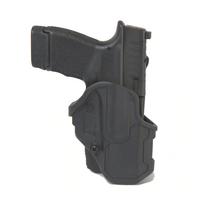 With its streamlined thumb-activated retention, the T-Series keeps your firearm at the ready while maintaining total security. Thanks to a drawing motion that operates off of the Master Grip Principle, you'll be able to get into the fight under even the most stressful of circumstances. A combination of reinforced outer polymer and smooth, sound-dampening, hydrophobic lining ensures your T-Series will perform no matter the elements and situation. Gun Fit: S&W M&P 9/.40/.45 & Taurus PT 24/7 Pro